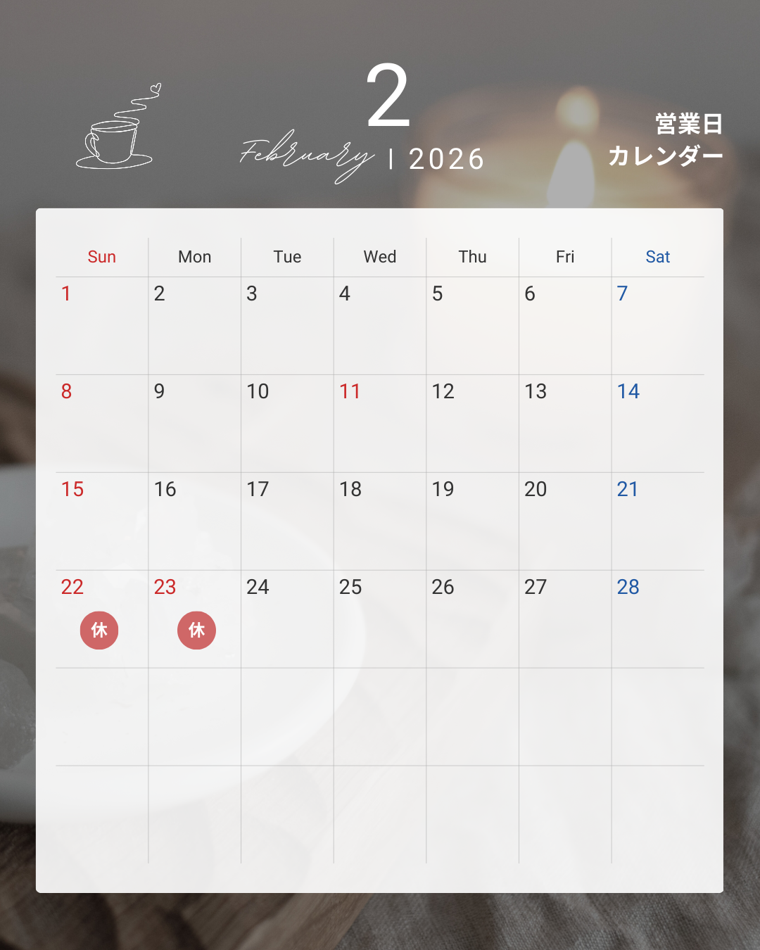 2月の定休日になります